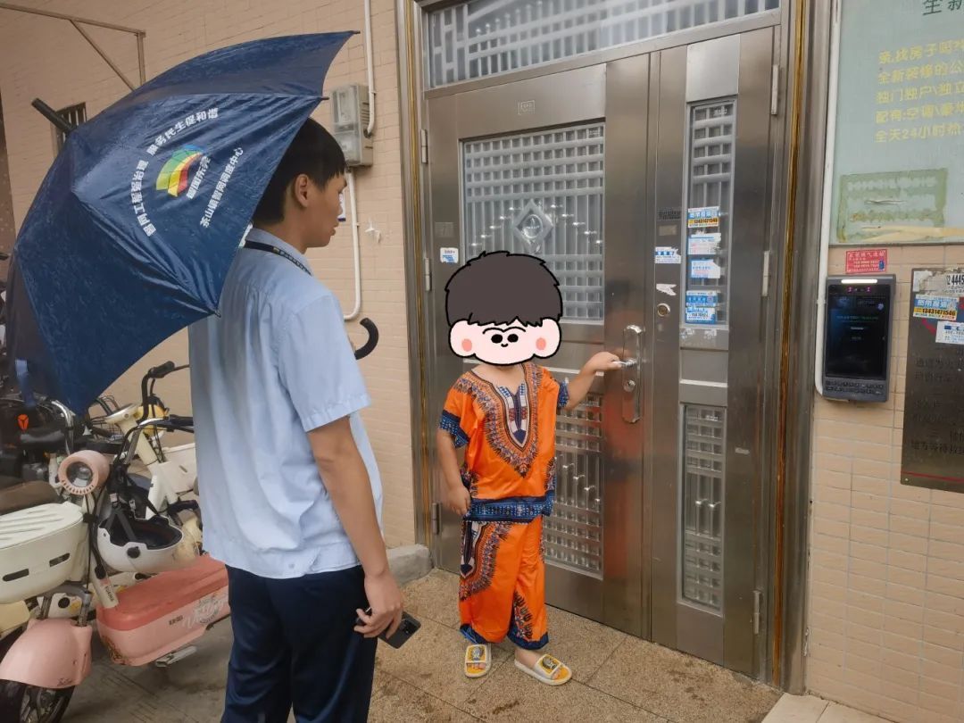 近日阴雨天气频繁,横江村网格员谢浩鹏在巡查安全隐患时,于长兴路发现一名小男孩独自在雨中徘徊。孩子神情紧张,不停地四处张望,浑身已被雨水打湿。